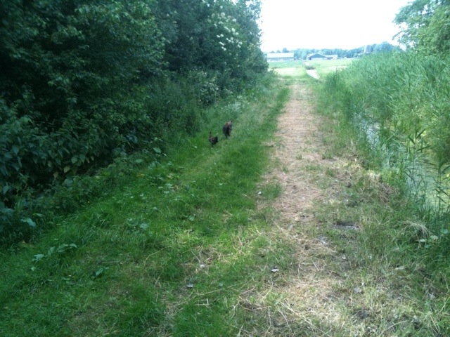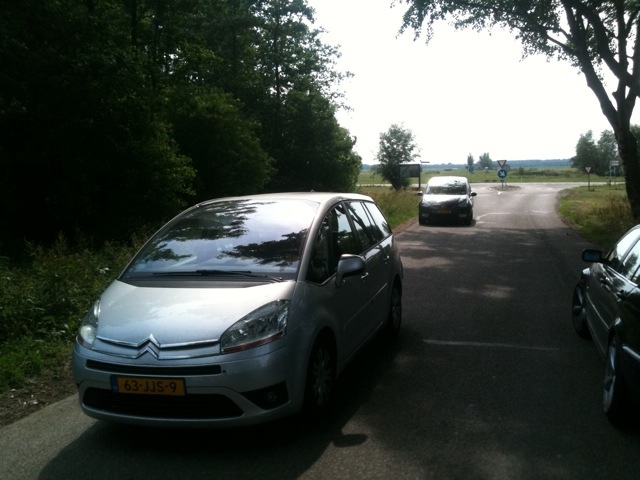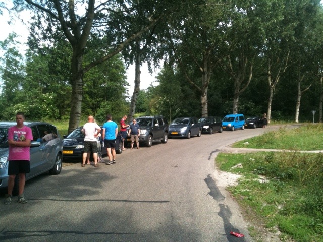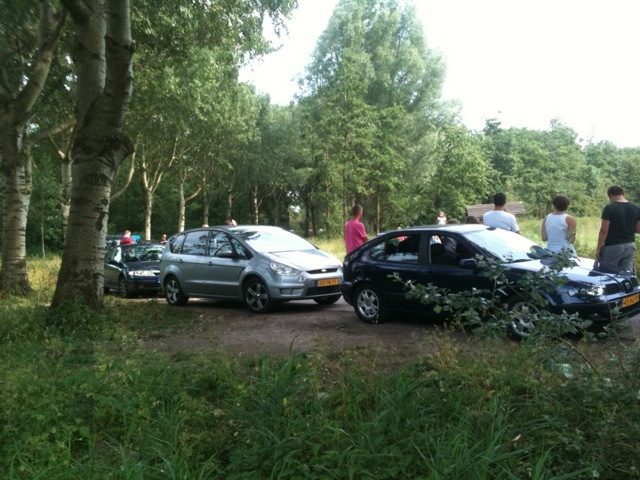 We wachten op de laatste auto’s in het kippenbos.
